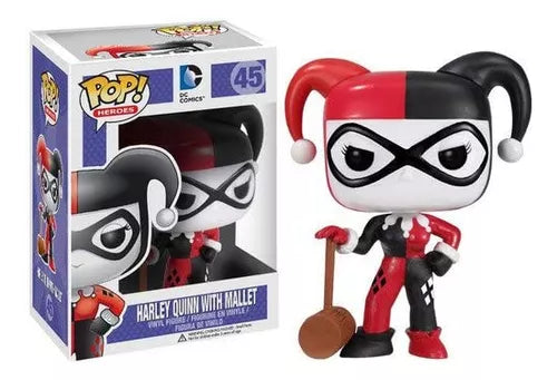 El Funko Pop! Harley Quinn with Mallet #45 muestra a Harley en su versión clásica, lista para causar caos con su gigantesco mazo. Una figura llena de actitud, color y ese toque impredecible que la hace inolvidable.
